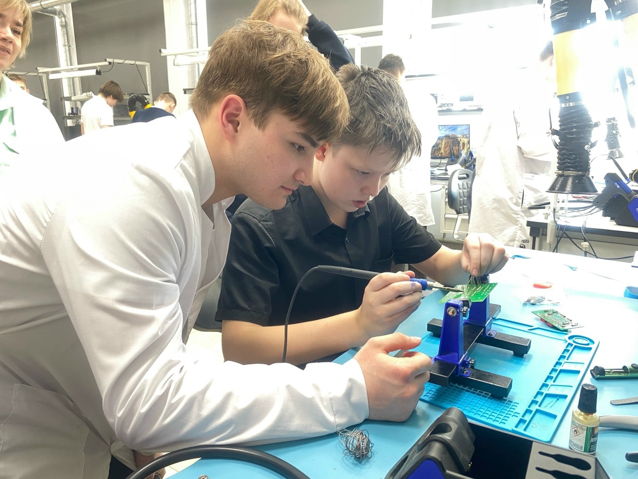 Регулировщик радиоэлектронной аппаратуры и приборов (РЭАиП) — специалист, который занимается электрической и механической настройкой и тестированием низко-, высоко- и сверхвысокочастотных устройств, блоков, шкафов и узлов. В его задачи входит обеспечение работоспособности, точности и надёжности работы приборов, механизмов, систем и оборудования. Некоторые направления работы регулировщика РЭАиП: Измерительные системы и оборудование, бытовая электроника,промышленная электроника, медицинская аппаратура, авиационная, судовая и космическая техника, оборудование связи и телекоммуникаций.В обязанности этого специалиста входят: настройка оборудования, тестирование и проверка работы, устранение неисправностей и т.д. С этой очень интересной и важной профессией сегодня знакомились обучающие в 7 классах МОУ «Дашковская СОШ».Совместно со специалистом Центра по профориентации и трудоустройству молодежи ребята посетили Серпуховский колледж (корпус 1) в рамках Всероссийского проекта «Билет в будущее».Ребята познакомились с профессией и самостоятельно паяли плату, узнали о этапах работы и рассмотрели оборудование на котором проходят обучение студенты.